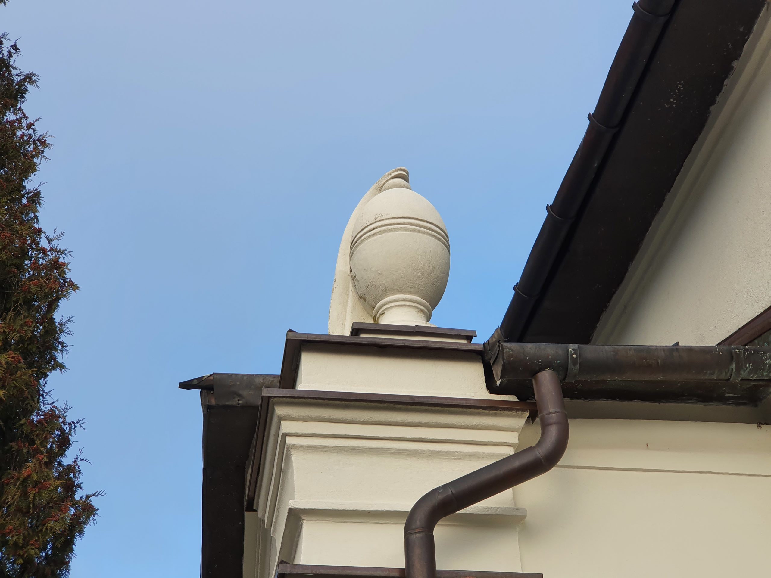Korytko służące do odprowadzania wody z rynny – cerkiew w Korniach.
