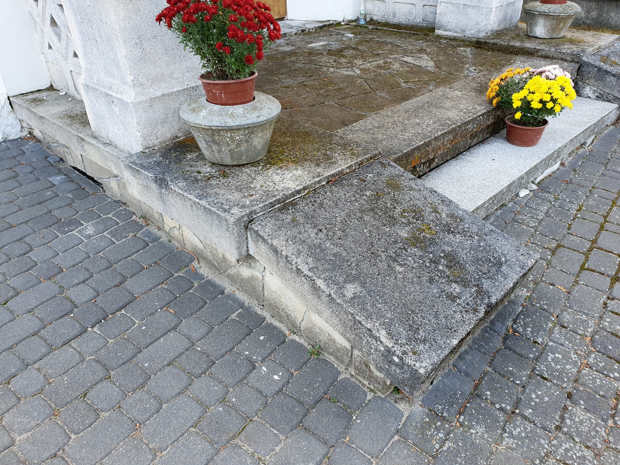 Kamienna płyta służąca jako schodek do cerkwi w Korczminie.